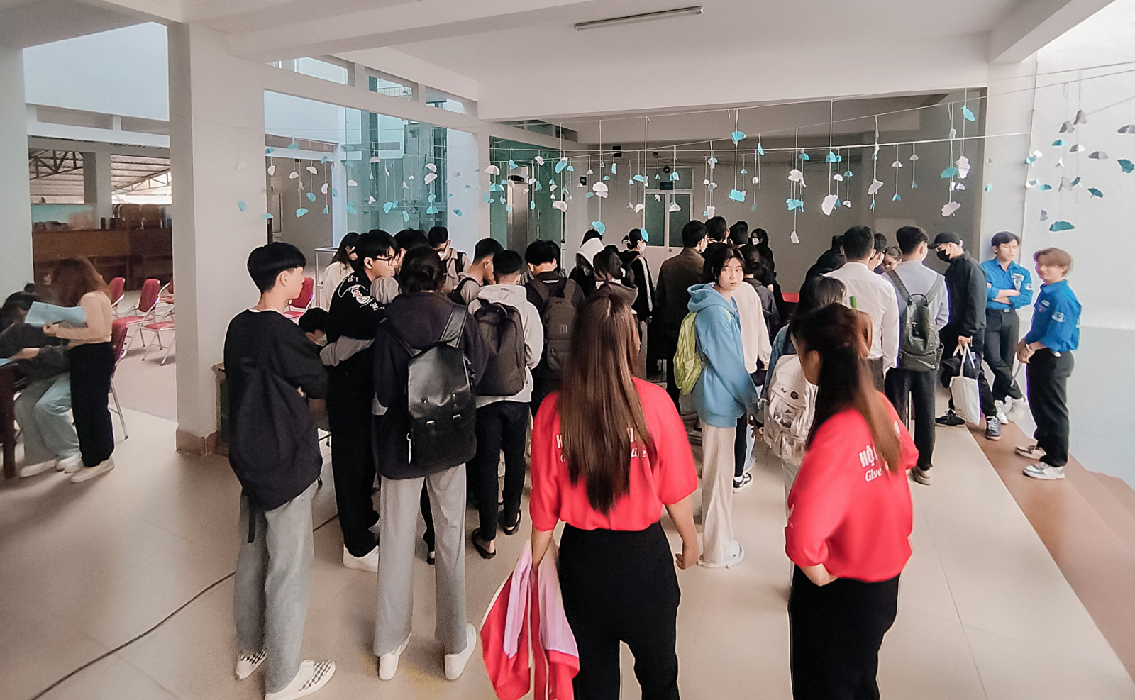 Các bạn đoàn viên ý thức xếp hàng để đăng ký tham gia Hiến máu