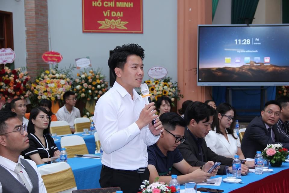 Cựu SV Trần Mạnh Đạt - Lớp C9G2, HDV du lịch Saigontourist phát biểu tại buổi họp mặt cựu CBGV, cựu HSSV