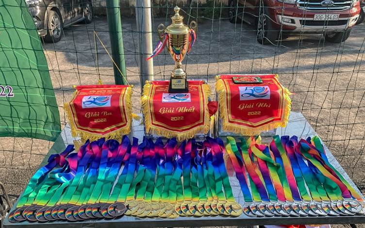 Cúp, cờ, huy chương trao tặng cho 03 đội bóng xuất sắc nhất Giải