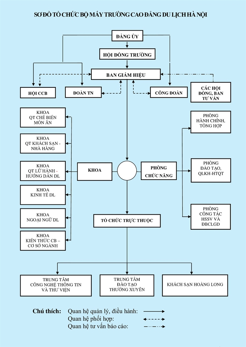 Đảng bộ Trường Cao đẳng Du lịch Hà Nội là hạt nhân chính trị, lãnh đạo thực hiện chủ trương, đường lối của Đảng, chính sách, pháp luật của Nhà nước và mọi hoạt động của các chi bộ, đơn vị, các tổ chức chính trị-xã hội trong Nhà trường.