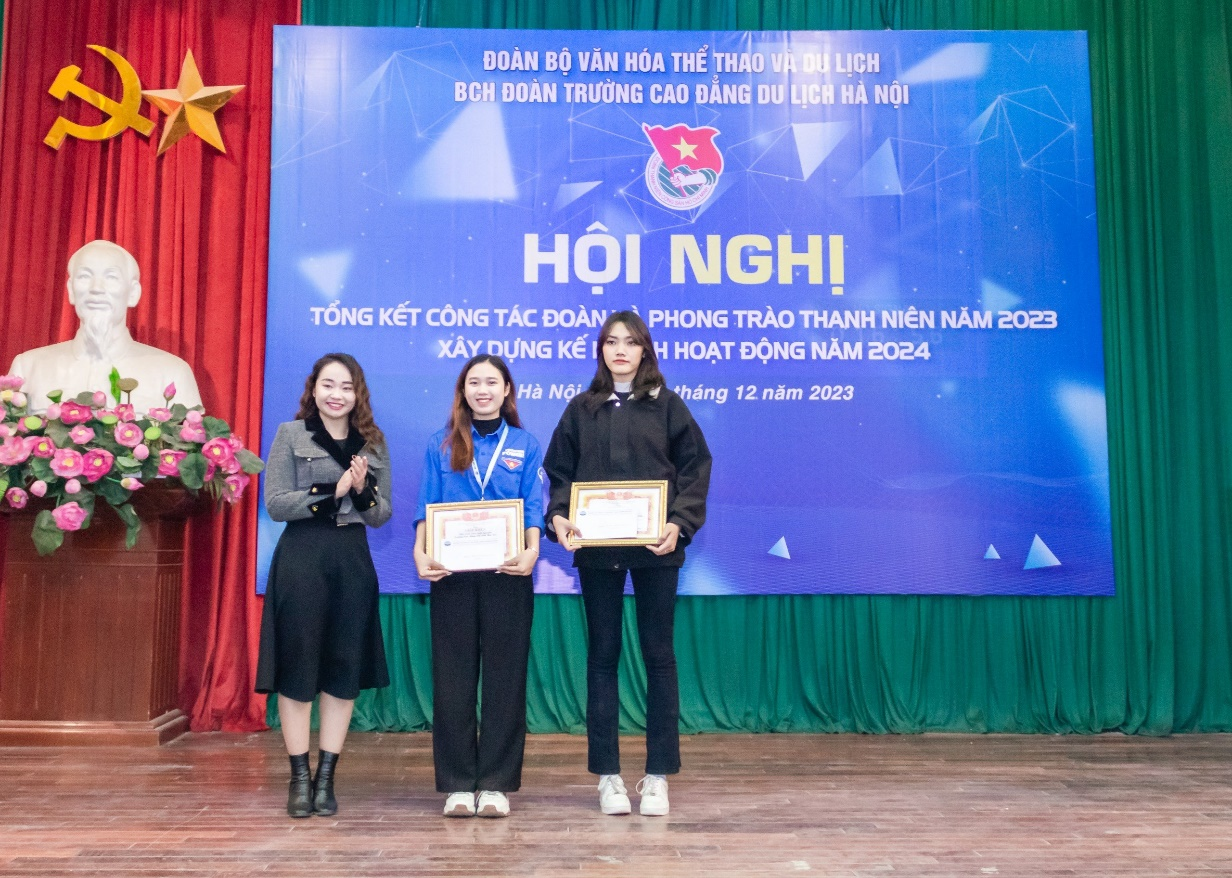 Đ/c Nguyễn Vân Anh – Phó Bí thư Đoàn TN Bộ Văn hóa, Thể thao và Du lịch và đ/c Nguyễn Thị Huyền Trang – Bí thư Đoàn trường trao tặng Giấy khen cho các cá nhân có thành tích xuất sắc