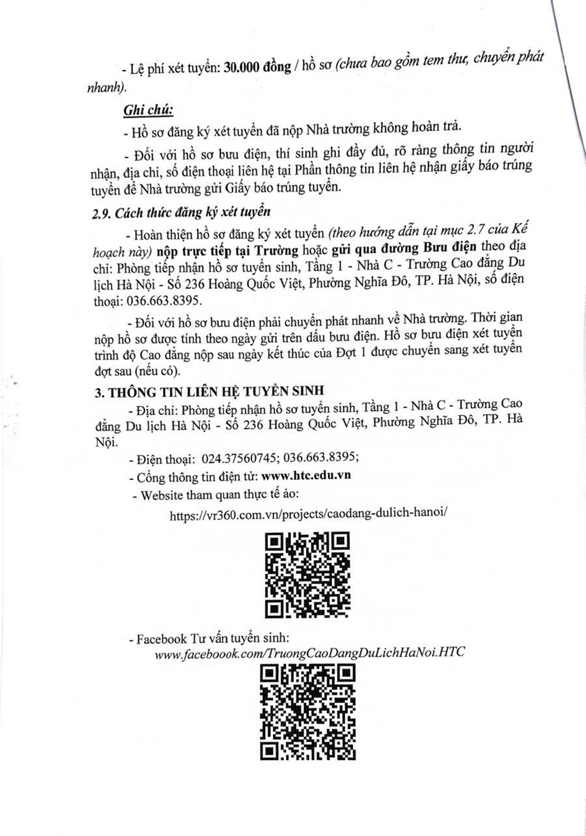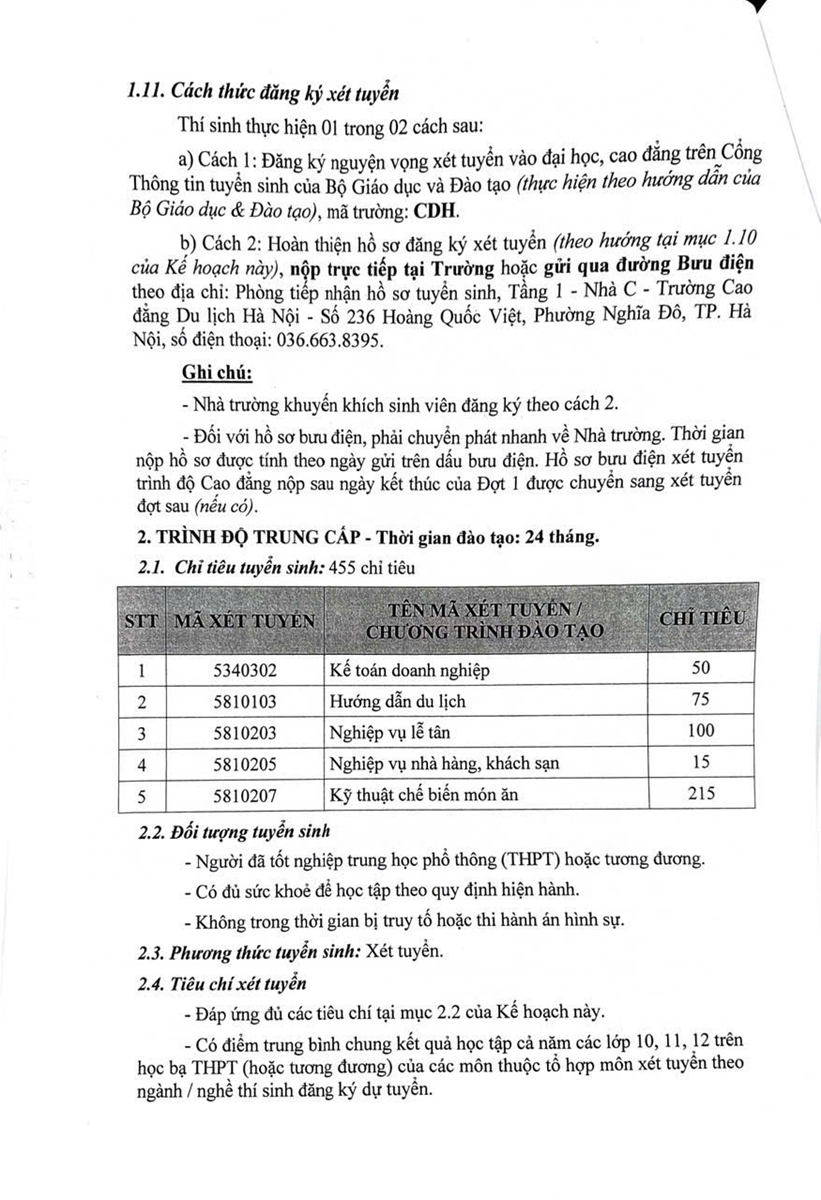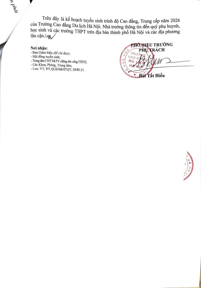 Trường Cao đẳng Du lịch Hà Nội thông báo điểm xét tuyển NV2 năm 2025