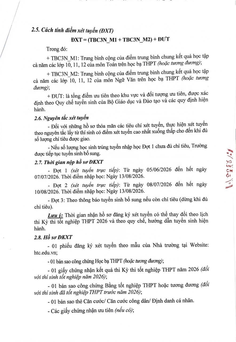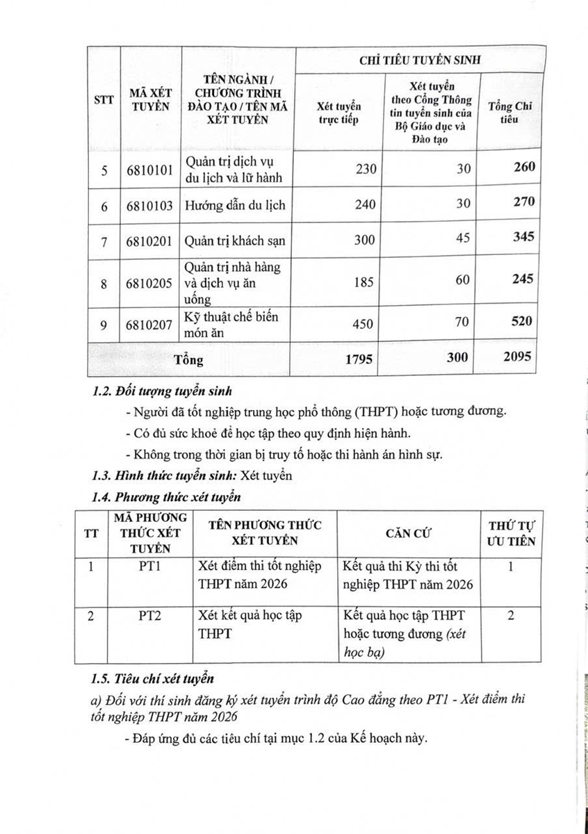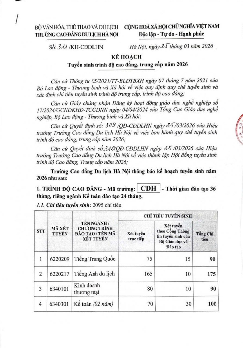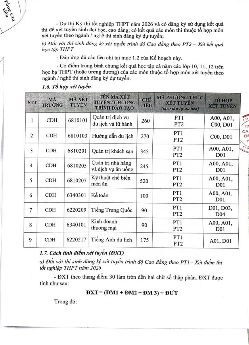 Trường Cao đẳng Du lịch Hà Nội thông báo điểm xét tuyển NV2 năm 2025