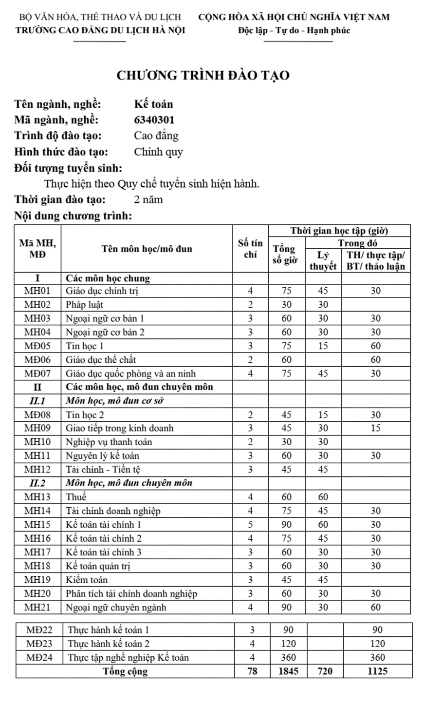 Chương trình đào tạo ngành kế toán