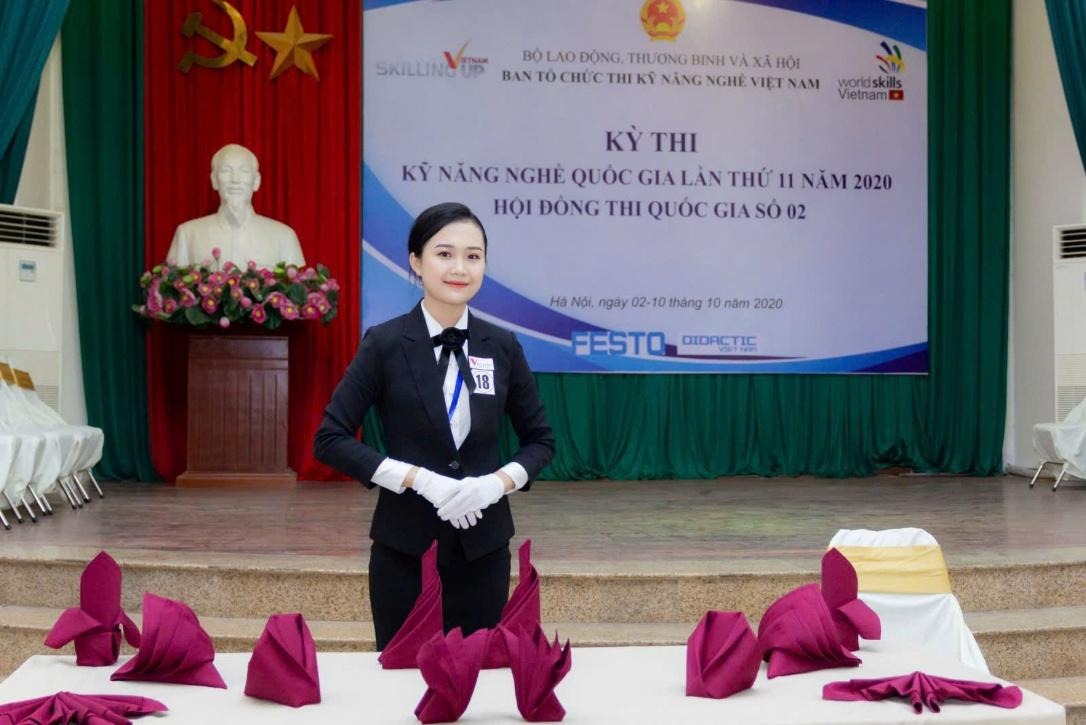 Sinh viên Đoàn Ngọc Ánh Giải Nhất kỳ thi tay nghề Quốc gia - Nghề Dịch vụ Nhà hàng năm 2020