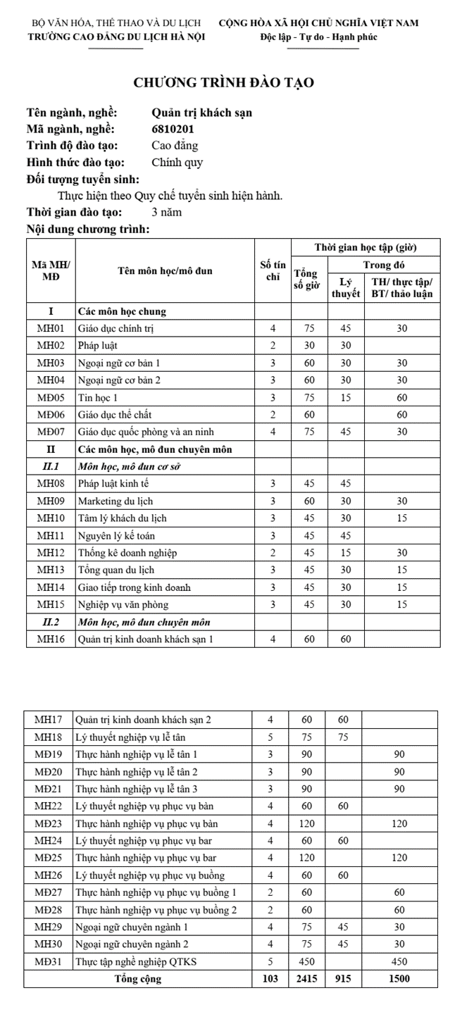 Trường cao đẳng du lịch hà nội