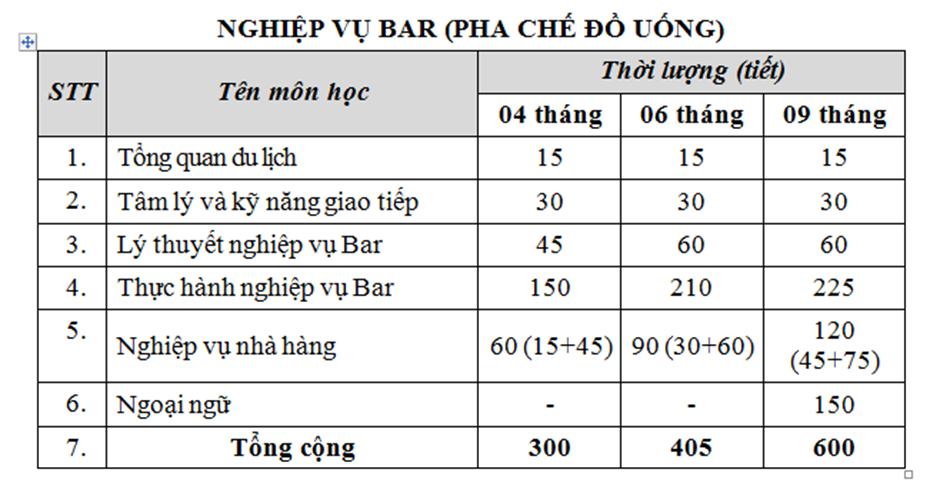 Nghiệp vụ Bar (Pha chế đồ uống)
