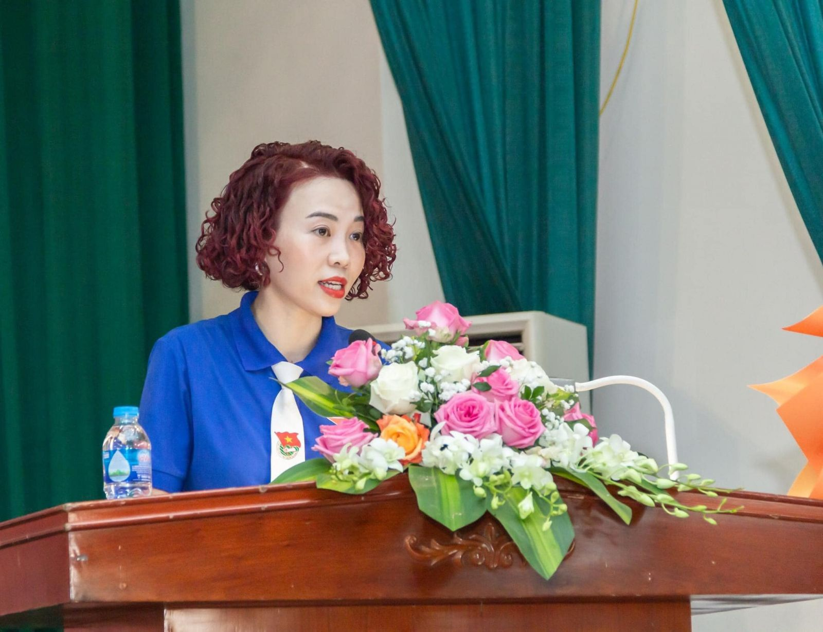 Đ/c Nguyễn Thị Huyền Trang – Bí thư Đoàn trường trình bày diễn văn kỷ niệm tại Lễ mít tinh.