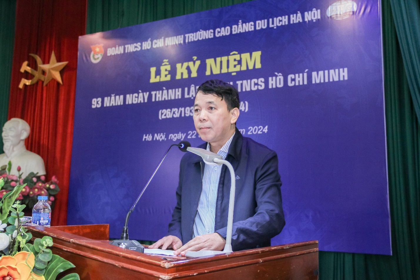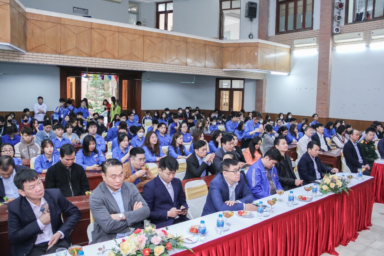 Phát biểu tại buổi lễ, Đ/c Trịnh Cao Khải, Hiệu trưởng Nhà trường đã thay mặt Ban giám hiệu gửi lời chúc mừng nồng nhiệt đến tuổi trẻ Nhà trường. Đồng chí bày tỏ sự tin tưởng vào sự phát triển mạnh mẽ của Đoàn trường trong thời gian tới, biểu dương những thành tích của các tập thể, cá nhân đã đạt được trong các phong trào thi đua do Nhà trường và Đoàn Thanh niên phát động, cũng như sự nỗ lực của BCH Đoàn trường như: Đơn vị dẫn đầu thi đua xuất sắc tiêu biểu 04 năm liên tiếp; Bằng khen của Bộ trưởng Bộ VHTTDL cho tập thể và cá nhân có thành tích xuất sắc; Bằng khen của Đoàn khối các Cơ quan TW cho cá nhân có thành tích xuất sắc và rất nhiều các loại giấy khen khác dành cho cá nhân và tập thể…