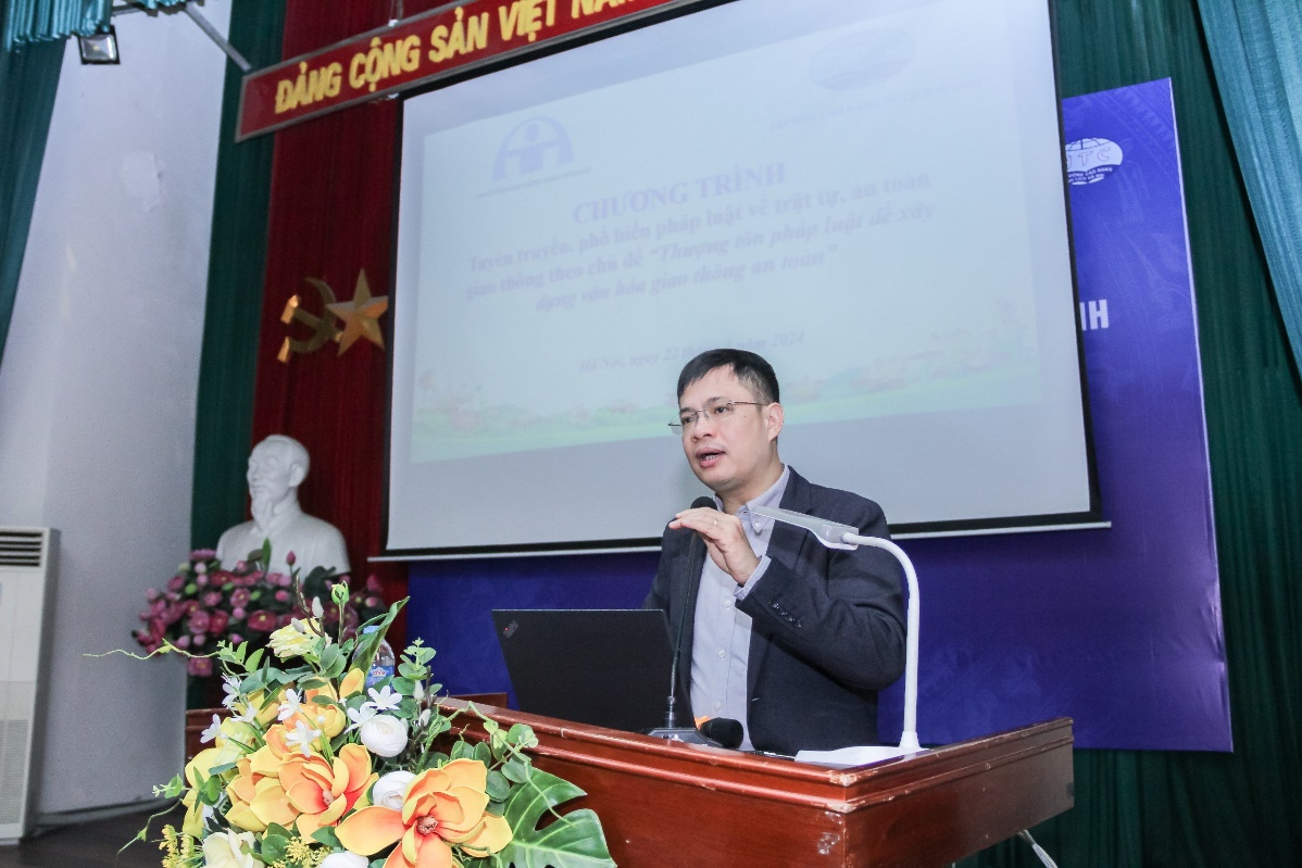 Đặc biệt trong buổi mít tinh, Đoàn thanh niên nhà trường đã phối hợp với Ban An toàn Giao thông Thành phố Hà Nội tổ chức Hội nghị tuyên truyền phổ biến pháp luật về trật tự, an toàn giao thông với chủ đề: “Thượng tôn pháp luật để xây dựng văn hóa giao thông an toàn” với sự tham gia chia sẻ đến từ báo cáo viên Thạc sỹ Tạ Đức Giang, Phó Chánh Văn phòng Ban An toàn giao thông Thành phố Hà Nội.