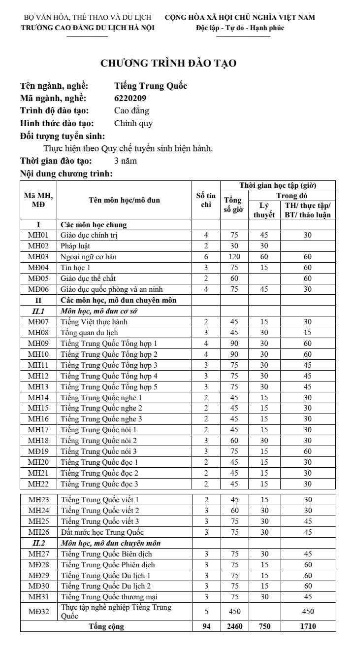 Trường cao đẳng du lịch hà nội
