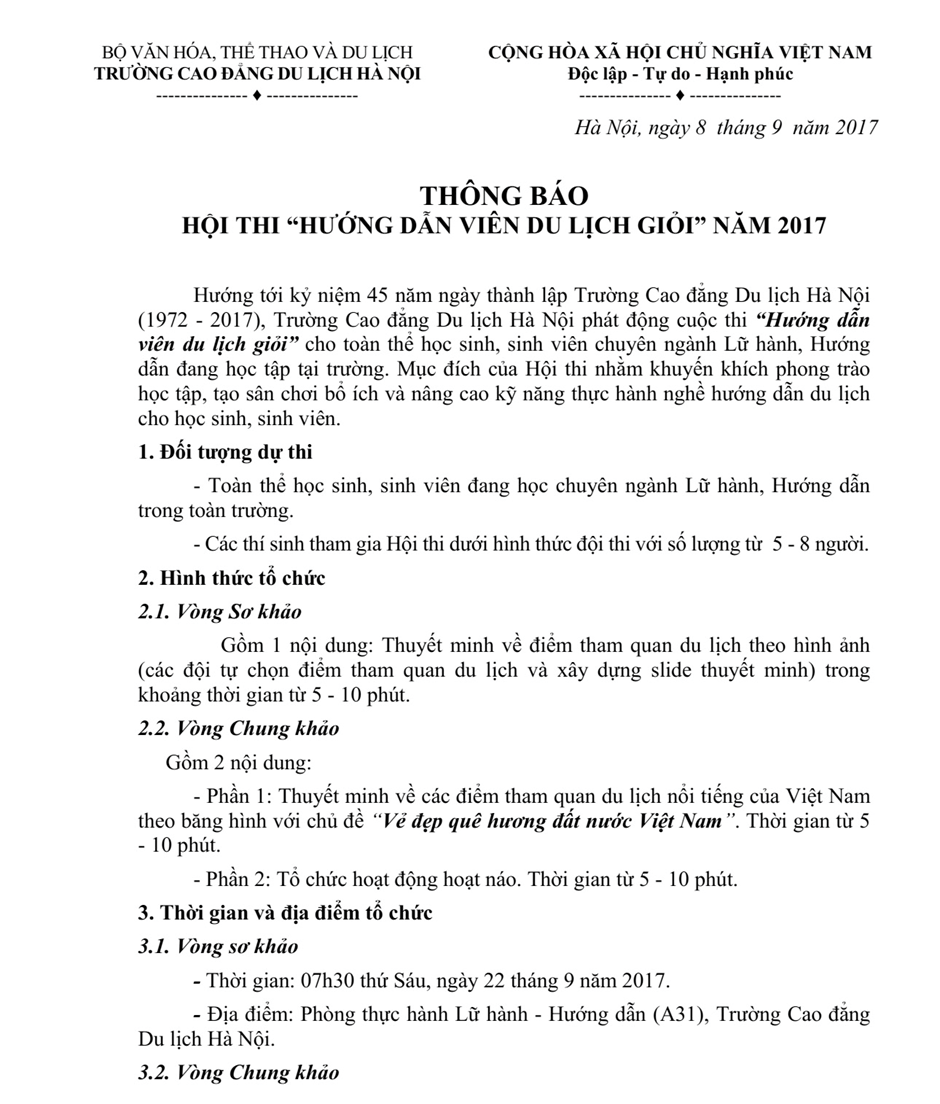 Thông báo hội thi "Hướng dẫn viên du lịch giỏi" năm 2017