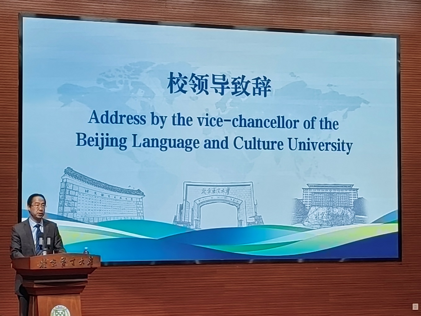 Ông Hoàng Ích Phương, Phó hiệu trưởng Đại học Ngôn ngữ và Văn hóa Bắc Kinh đại diện cho đơn vị tổ chức phát biểu khai mạc hội thảo.