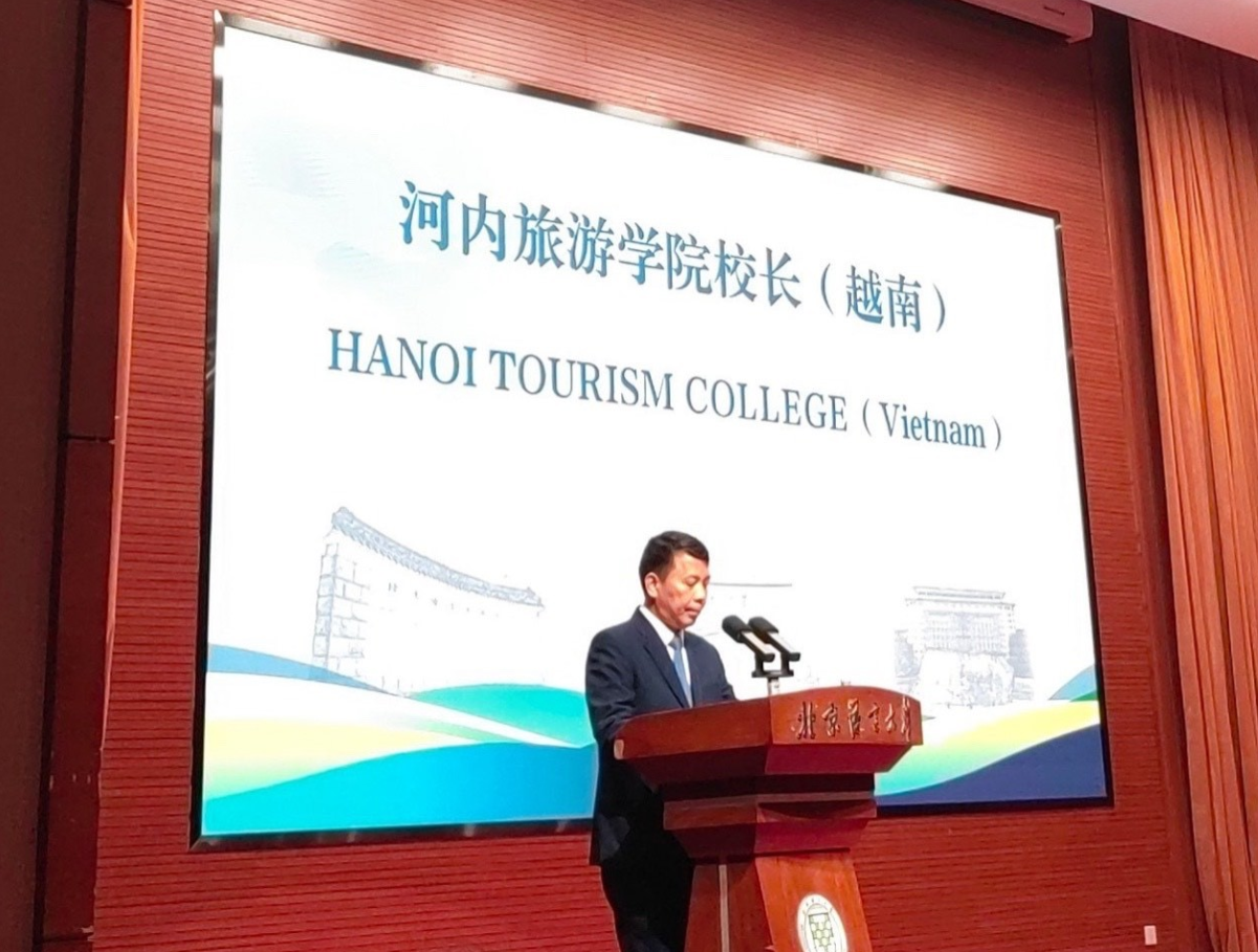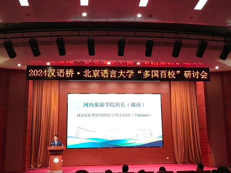 Nhận lời mời của Đại học Ngôn ngữ và Văn hóa Bắc Kinh, Trung Quốc, Trường Cao đẳng Du lịch Hà Nội đã cử đoàn đại biểu tham dự “Hội thảo giao lưu lãnh đạo quản lý các trường phổ thông, cao đẳng đại học trên thế giới” từ ngày 8 đến ngày 12 tháng 7 năm 2024 tại Bắc Kinh, Trung Quốc. Đoàn công tác do Thầy Trịnh Cao Khải, Bí thư đảng ủy, Hiệu trưởng nhà trường dẫn đầu tham gia và có bài phát biểu tại hội thảo.