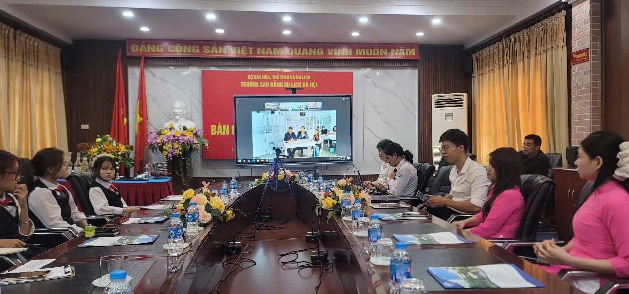 Nhằm mang đến cơ hội tiếp xúc và trải nghiệm quốc tế cho sinh viên, chiều ngày 16/6/2025, Trường Cao đẳng Du lịch Hà Nội đã tổ chức buổi giao lưu trực tuyến đầy sôi động với Học viện Khách sạn và Du lịch Pislsen (Cộng hòa Séc)